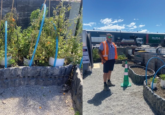 The ACL yard is being reorganised to simplify recycling, with old tires and scrap materials now being reused creatively. For example, digger tracks are being transformed into vegetable gardens, which Jock says have been a huge hit with staff.